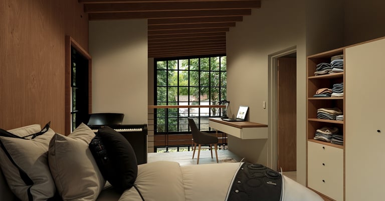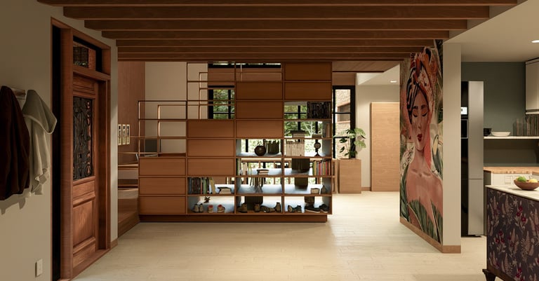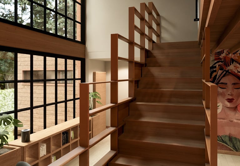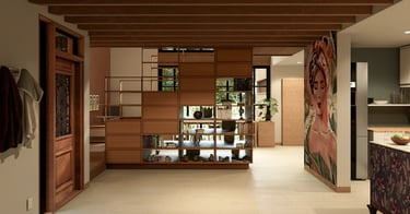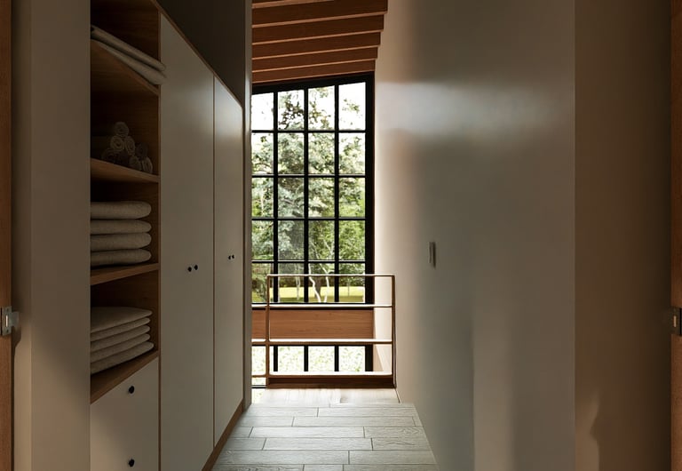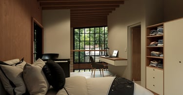 Espacios cálidos y funcionales con materiales naturales, texturas orgánicas y una paleta neutra inspirada en el entorno. Iluminación natural, mobiliario a medida y detalles artesanales crean una atmósfera acogedora y sofisticada. Diseño que invita a habitar y sentir.